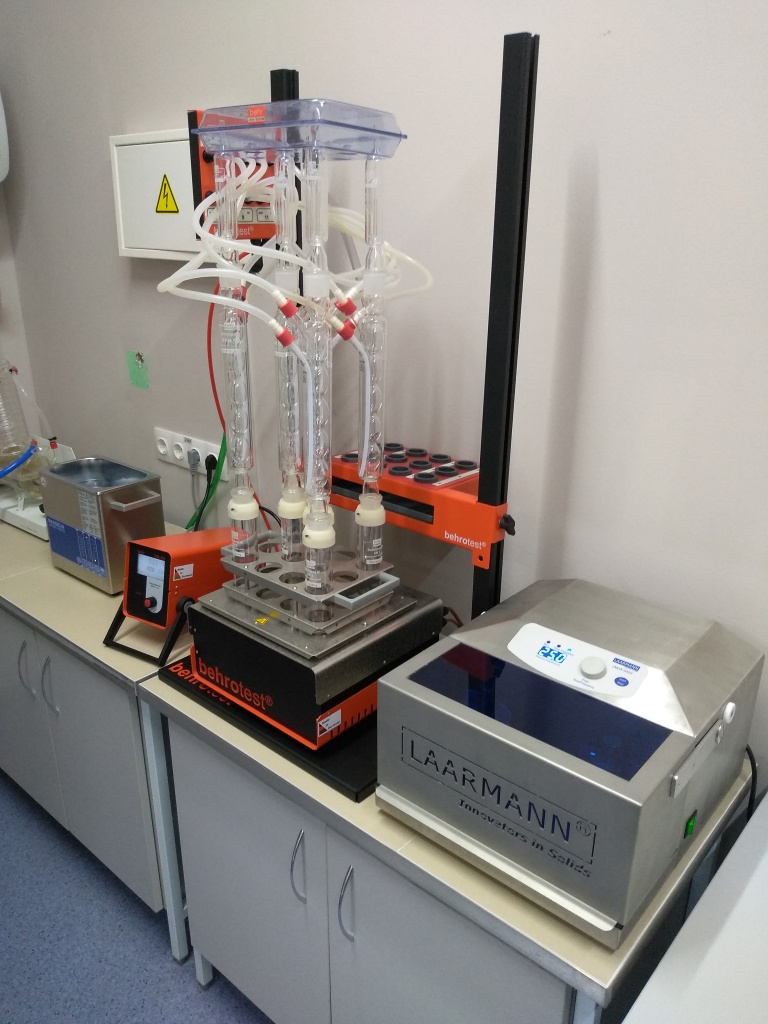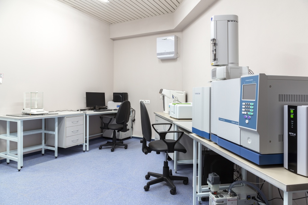 Дополнительно: шкафы вытяжки, ультразвуковые ванны, роторные испарители, калибровочные стандарты и LIMS-система для управления пробами.